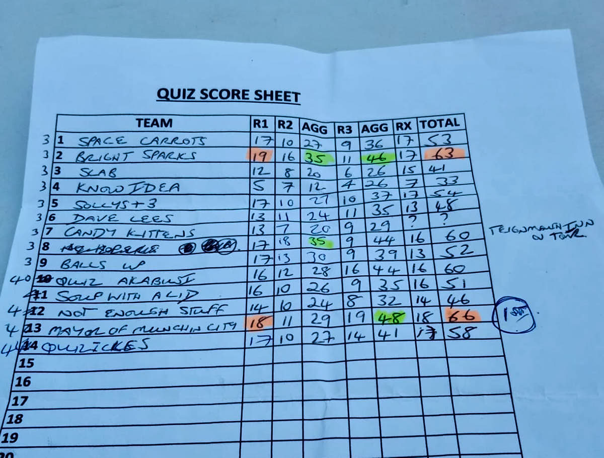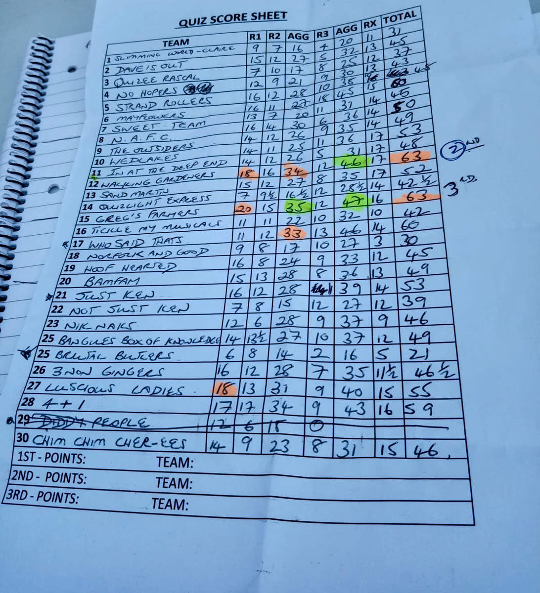 Sunday evening’s Carnival Quiz and 43 teams entered. We certainly had to get the emergency chairs over !