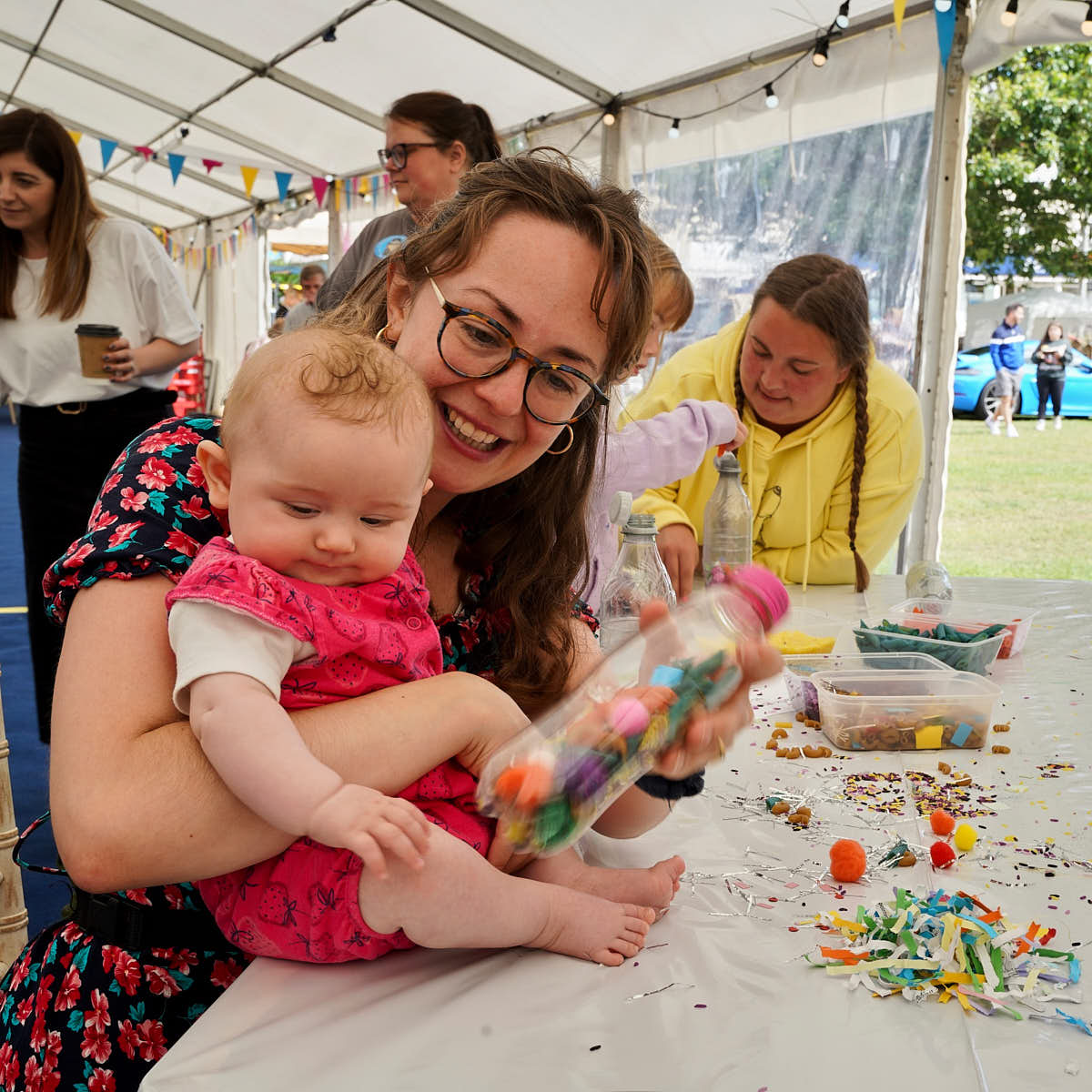 Shakers session and music in the Marquee this morning led by @Roots – Community Enhancement and the junk modelling this afternoon.