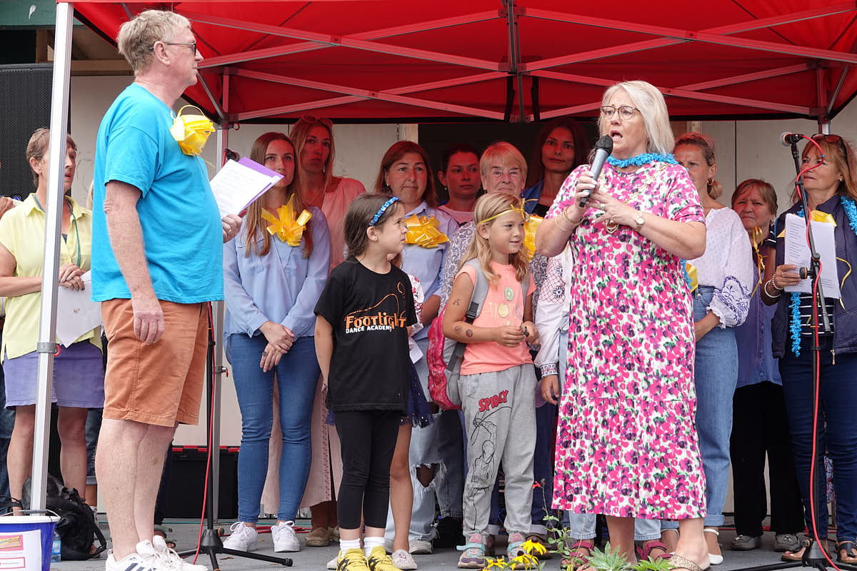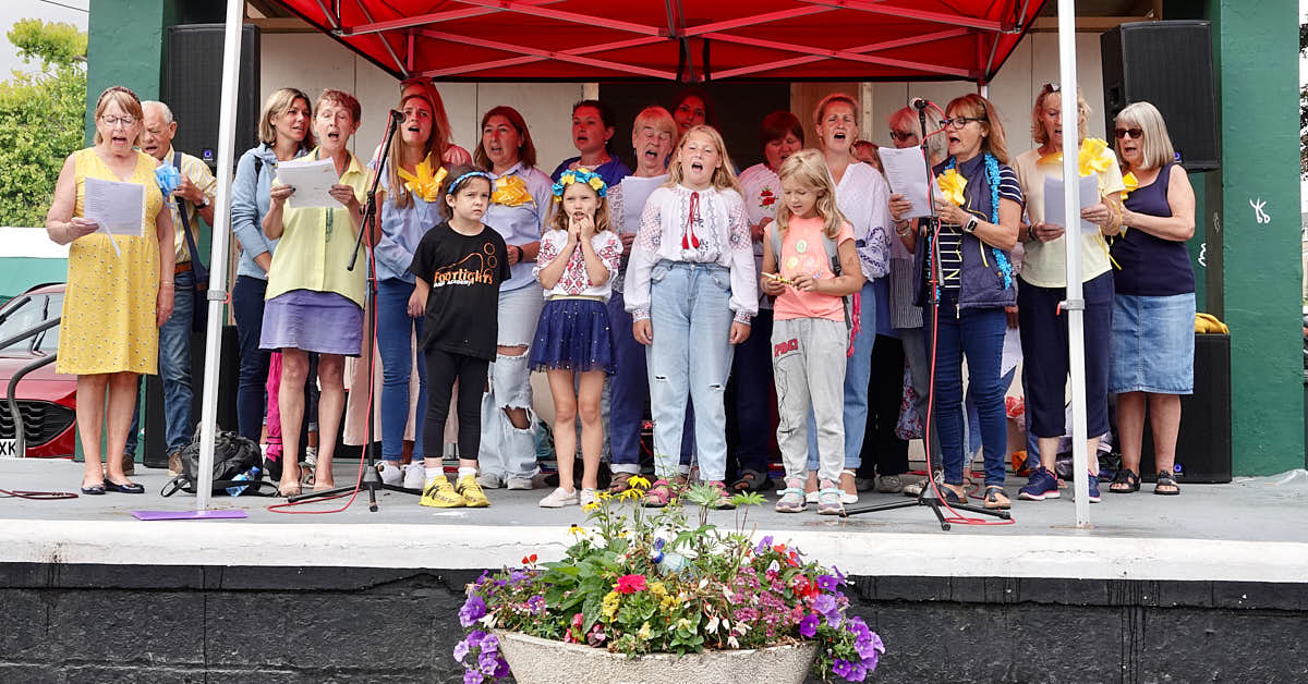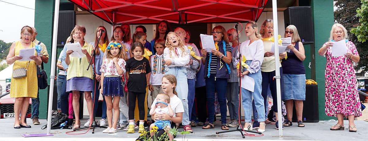 Support for the Ukraine Pop-Up Choir with Mayor of Dawlish Lisa Mayne.