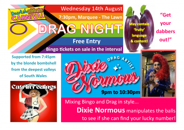 £1 per three ‘custard carnival’ pies. Wear clothes that don’t matter or your own fancy dress. Can you hit the carnival pinkie target as they throw pies back at you? Points for best technique and ability. Prizes for best overall adult and child versus carnival pinkie.